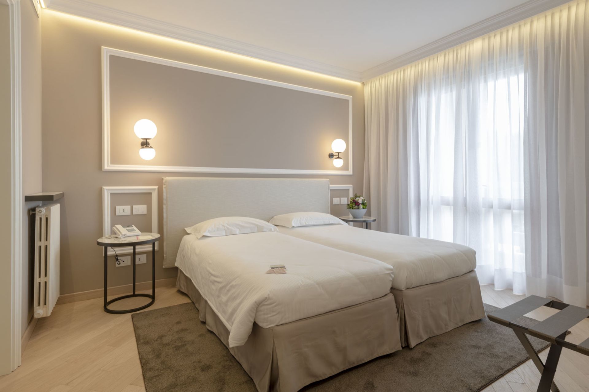 Doppelzimmer Superior alle in modernem, eleganten Stil im 6. Stock, Parkett statt Teppichboden;