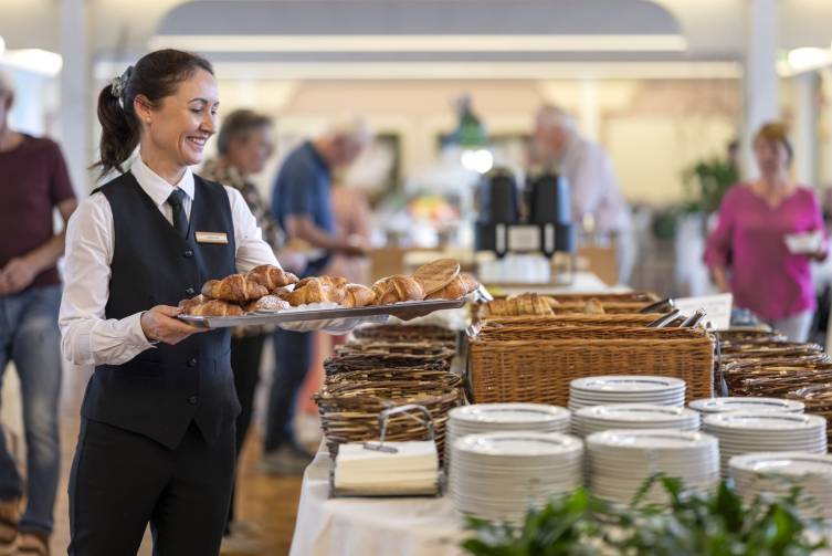 Vollpension, Halbpension: reichhaltiges Frühstücksbuffet, mittags und abends Wahlmenü mit Salatbuffet; allergikerfreundliche Küche auf Anfrage.