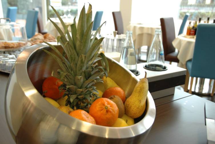 Vollpension, Halbpension: Frühstücksbuffet, mittags und abends ausgezeichnetes Wahlmenü mit Salatbuffet; bei Schönwetter wird das Mittagessen teilweise im Bistro direkt am Pool eingenommen; zum Mittag- und Abendessen erhält jeder Idealtours-Busgast 1/2 l Wasser.