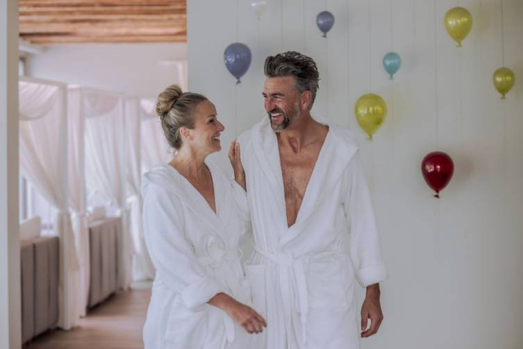 2 Thermalaußenpools, davon einer mit Thermalinnenpool (18 x 13 m) verbunden (geöffnet von 08:00-19:30 Uhr), mit verschiedenen Temperaturen und Hydromassagen, Kneippbecken; 2. Außenpool ist ein Halb-Olympiabecken (ca. 29 °C), neuer Natura Emotion Spa: Entspannungssalzgrotte, Panoramasauna, Hamam - Türkisches Bad, Tropische Dusche mit Aromatherapie, Ruheoasen, Wellness- und Kosmetikbereich, neue Kurabteilung, Badehaubenpflicht; Bademantel & -tuch inklusive.